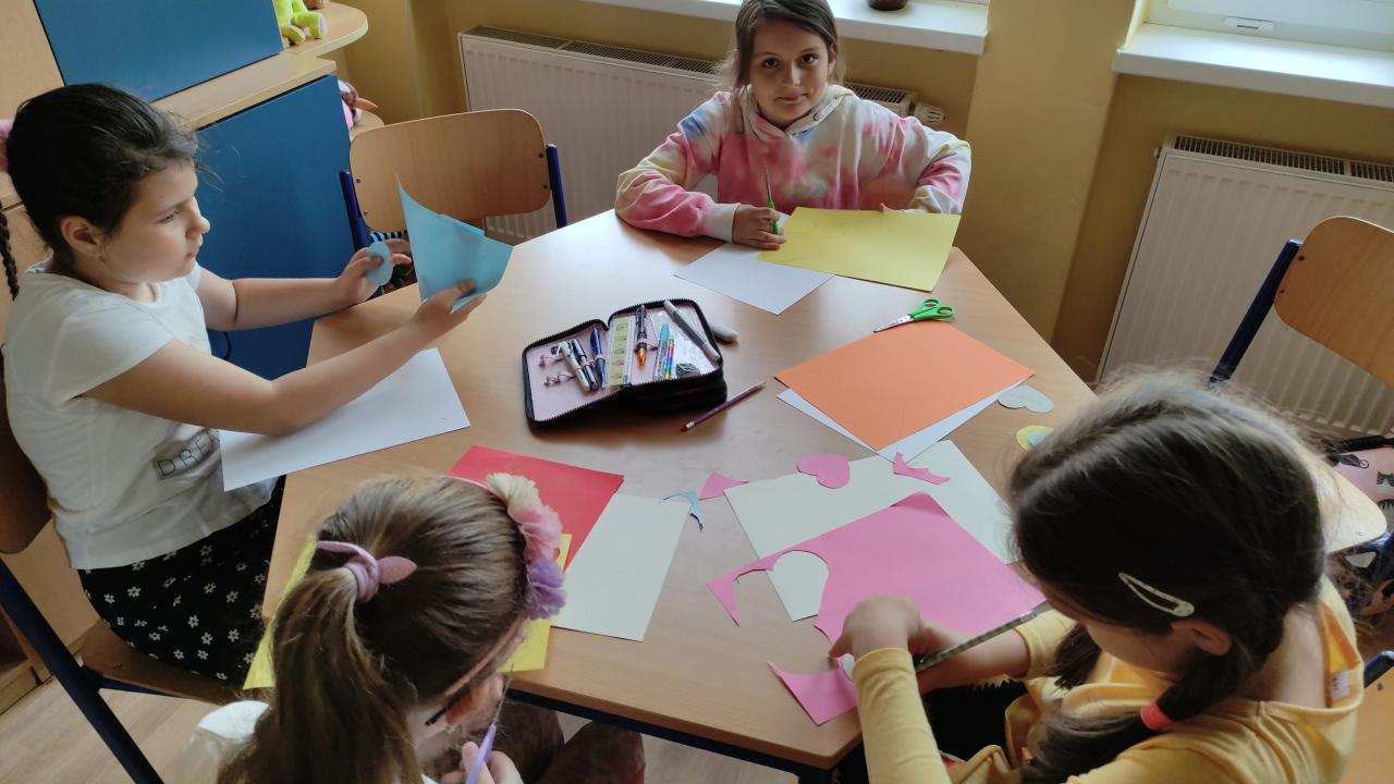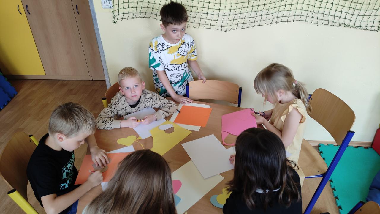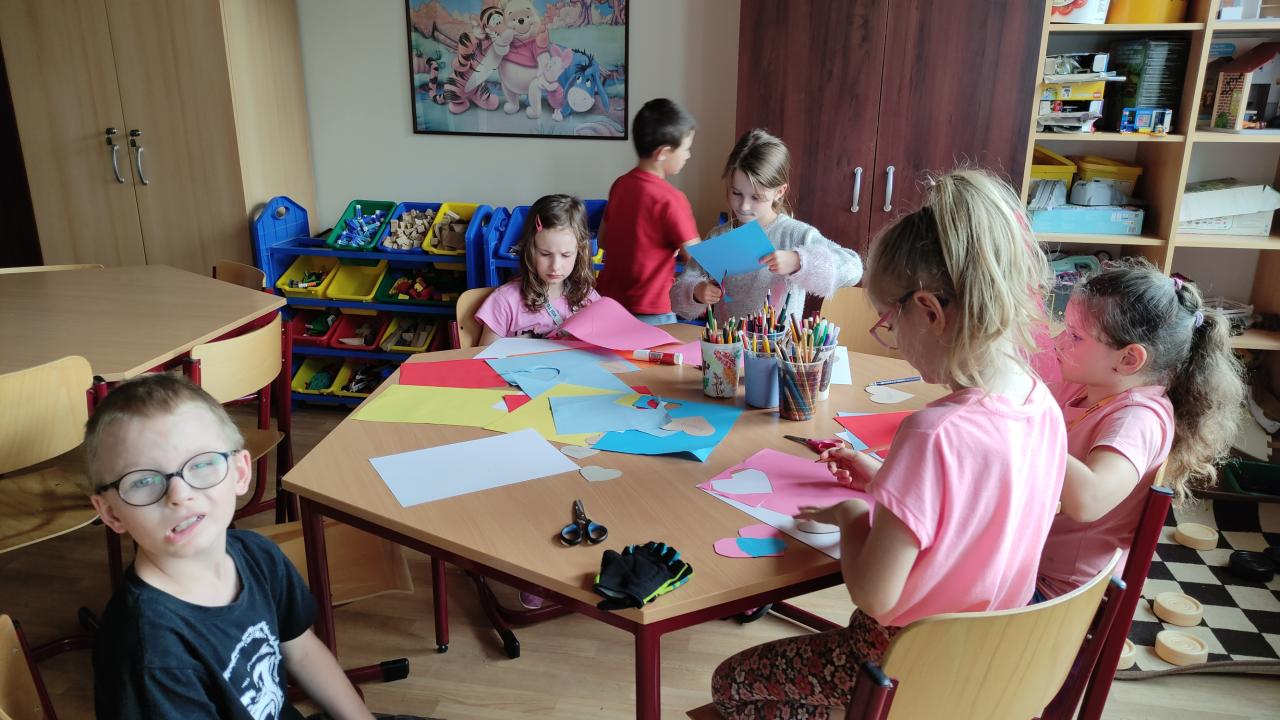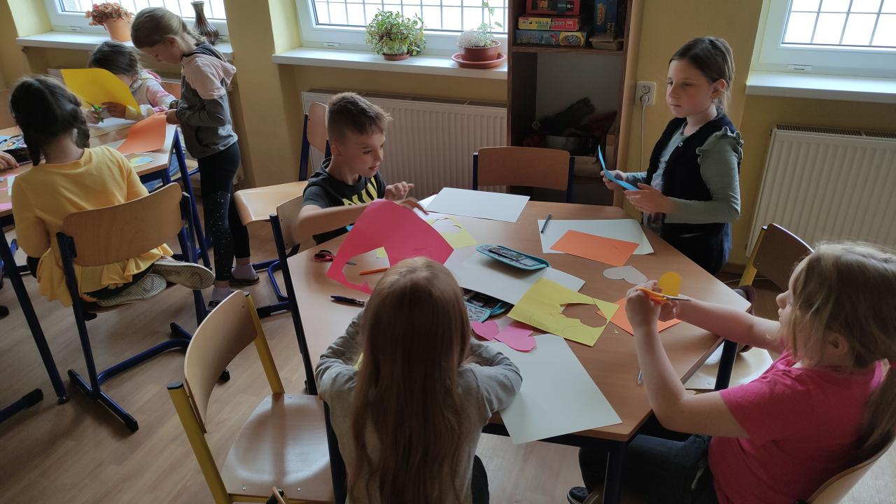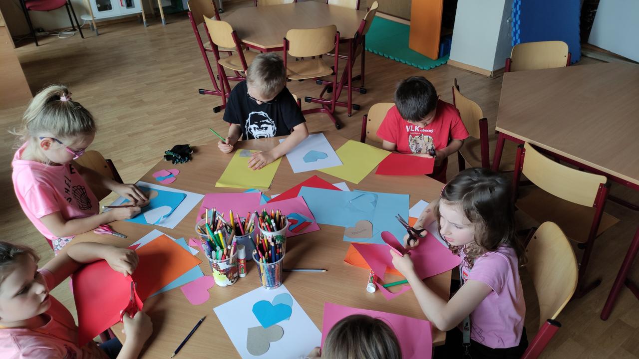 Družinová tvorba 1. a 2. oddělení - Srdíčkové květiny na louce