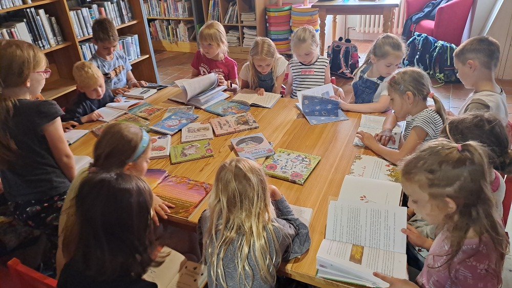 Vycházka 1.A do přírody a knihovny