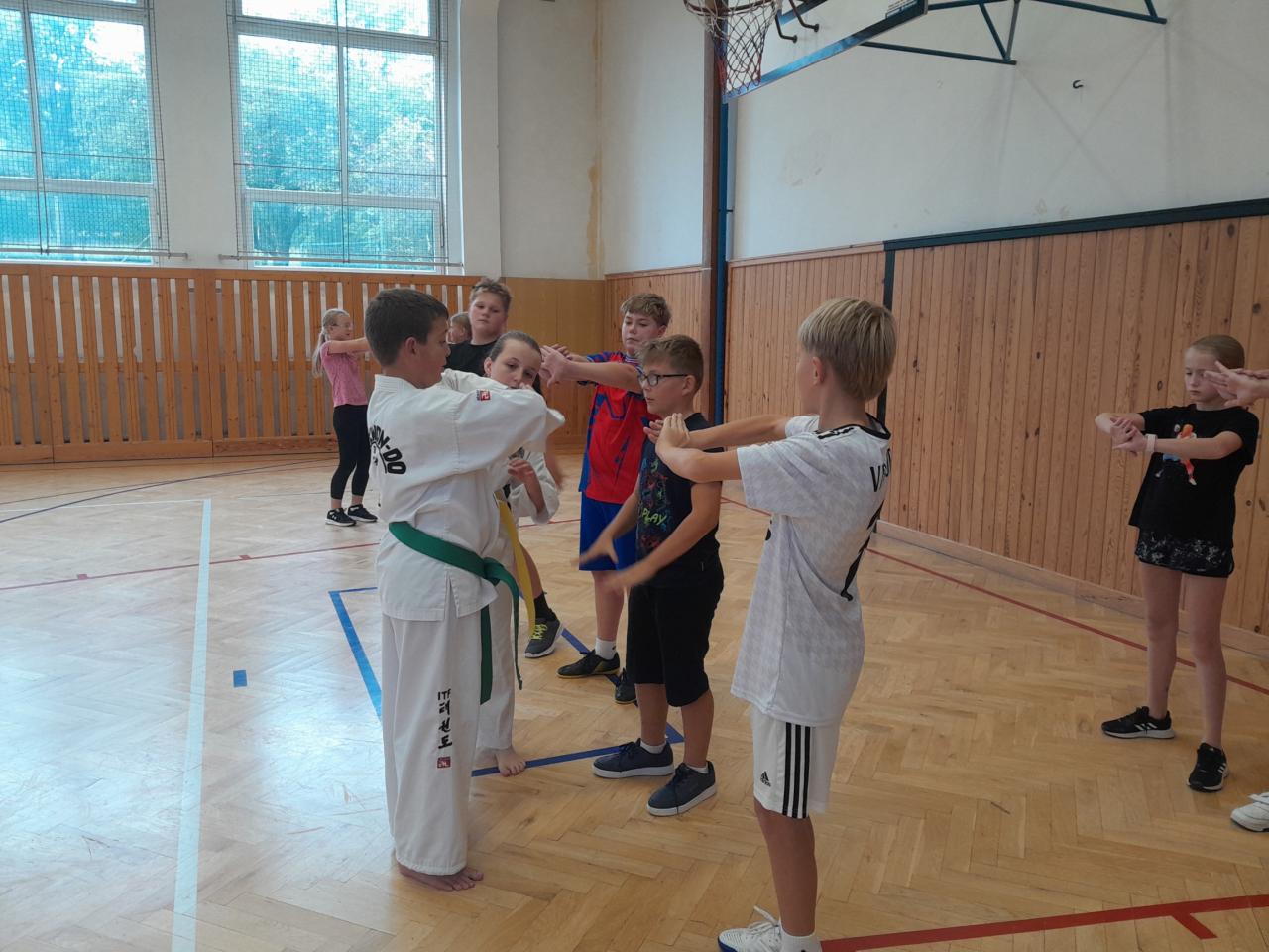 Ukázková hodina taekwonda v tělesné výchově