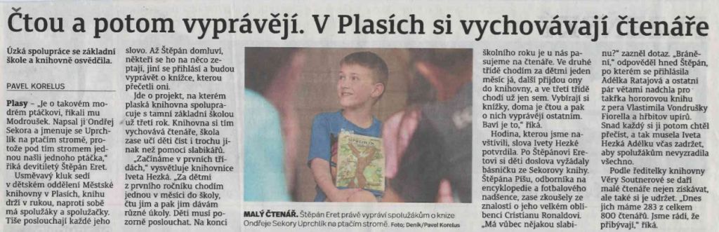 Stejně jako v minulých letech jsme i v tomto školním roce pokračovali v tradici spolupráce knihovny a našich nejmladších žáků. Začali jsme před třemi roky s jednou třídou. Byli to prvňáčci paní učitelky Ivany Halamové a postupně se přidaly i další třídy. Žáci si s paní knihovnicí, která za dětmi do školy dochází, čtou, poslouchají, vypráví, hodnotí, diskutují, …… Paní knihovnici Ivetě Hezké děkujeme za její ochotu a trpělivost u dětí s paními učitelkami rozvíjet touhu po čtení.